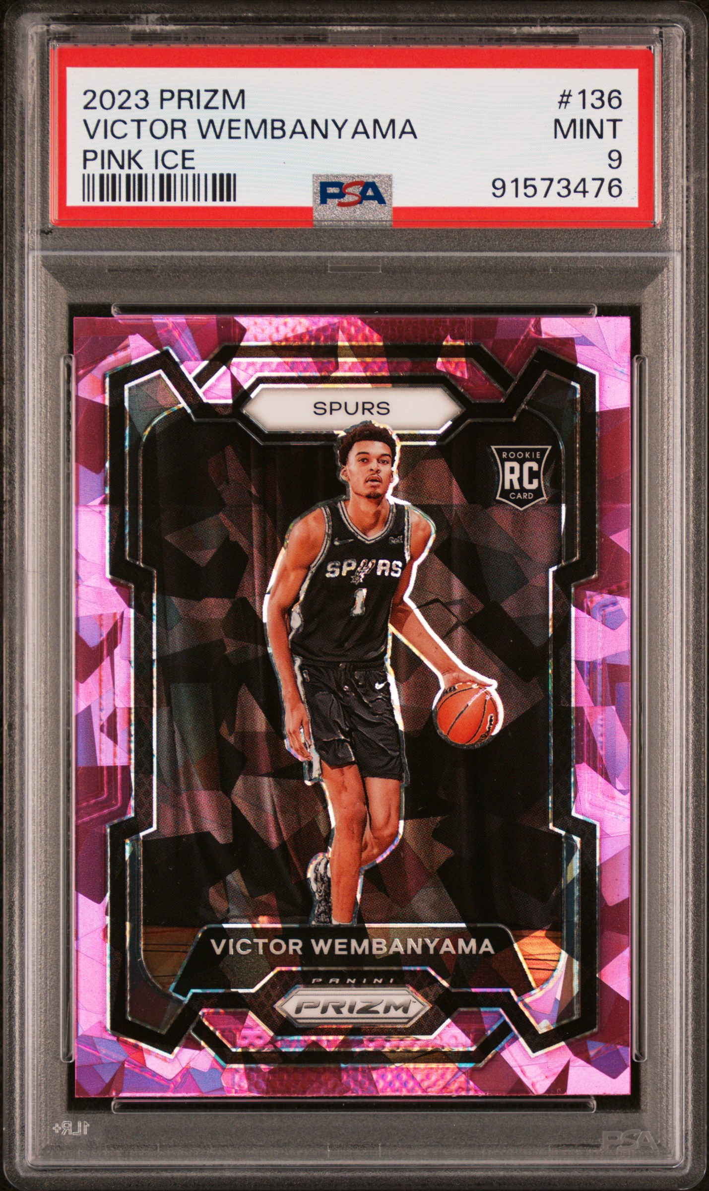 ![]() 2023 Panini Prizm Pink Ice #136 Victor WembanyamaPSA 9 | $145 | $131 | $180 | ✅ PSA |